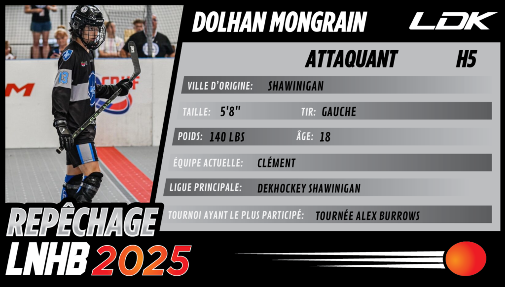 Toutefois, Mongrain devra prendre un peu de masse dans les prochaines saisons afin de pouvoir démontrer tout son talent parmi les meilleurs du dek hockey mondial. Heureusement pour Shawinigan, la présence de Sammy Dubois ne pourra être que bénéfique pour le développement de Dolhan Mongrain.